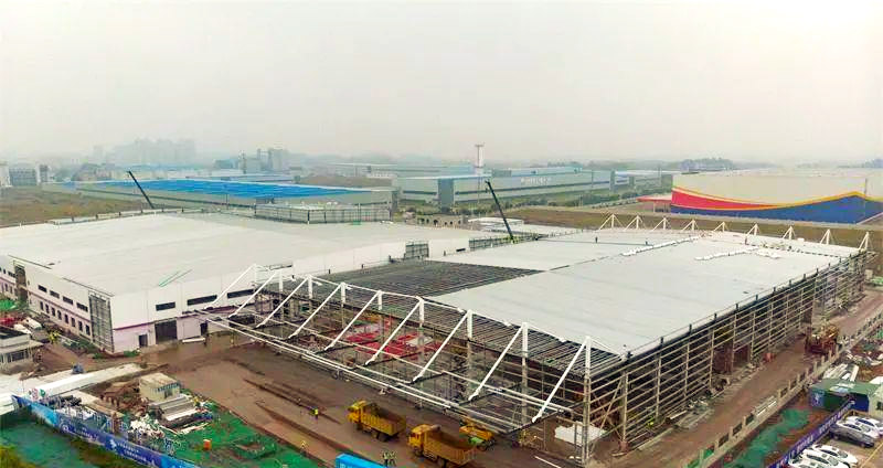 近日,四川內(nèi)江飲料生產(chǎn)基地廠房主體鋼構(gòu)已圓滿收工,目前正聚焦于外立面的施工細(xì)節(jié),同時(shí)展開倉庫屋頂頂棚鋼板的鋪設(shè)工作。