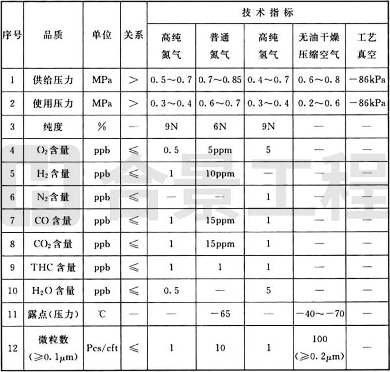 B.0.1 發(fā)光二極管生產(chǎn)工藝動力品質(zhì)(氣體)要求可按表B.0.1執(zhí)行。