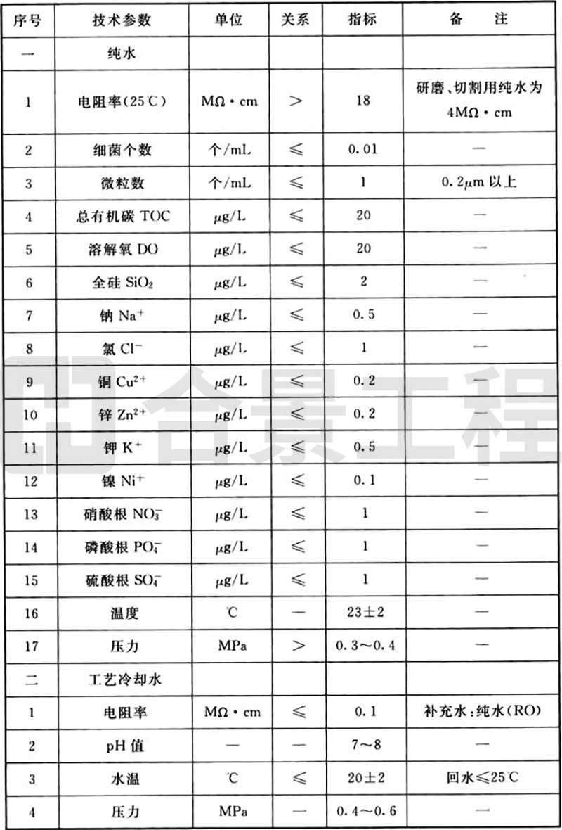 表B.0.2 工藝動力品質(zhì)(水)要求